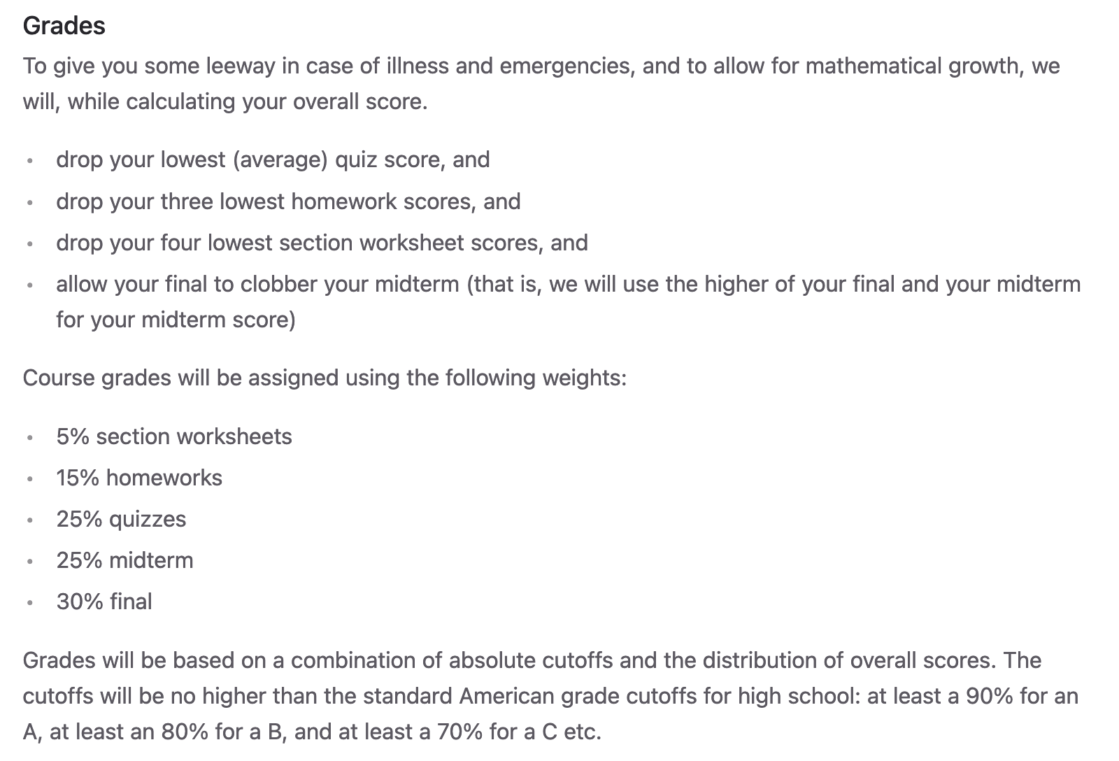 The current best solution for instructors to calculate final grades based on their course policy is to either of the following:
